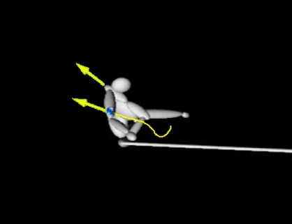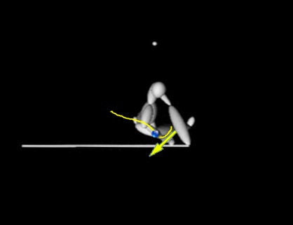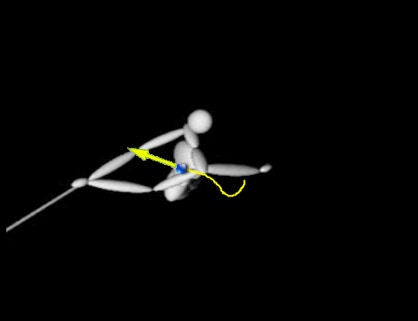 Frame two shows us the Right Hip's dominant direction and work at the start of the Backstroke. The arrow indicates the 50-degree angle the Right Hip starts on. It also shows the depth of the Right Hip retraction. This starting motion feels like a pure turn.