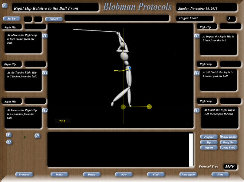 This is starting location of the Right at Address. We are going to pay attentiion to how much travel we see in the Right Hip during The Swing