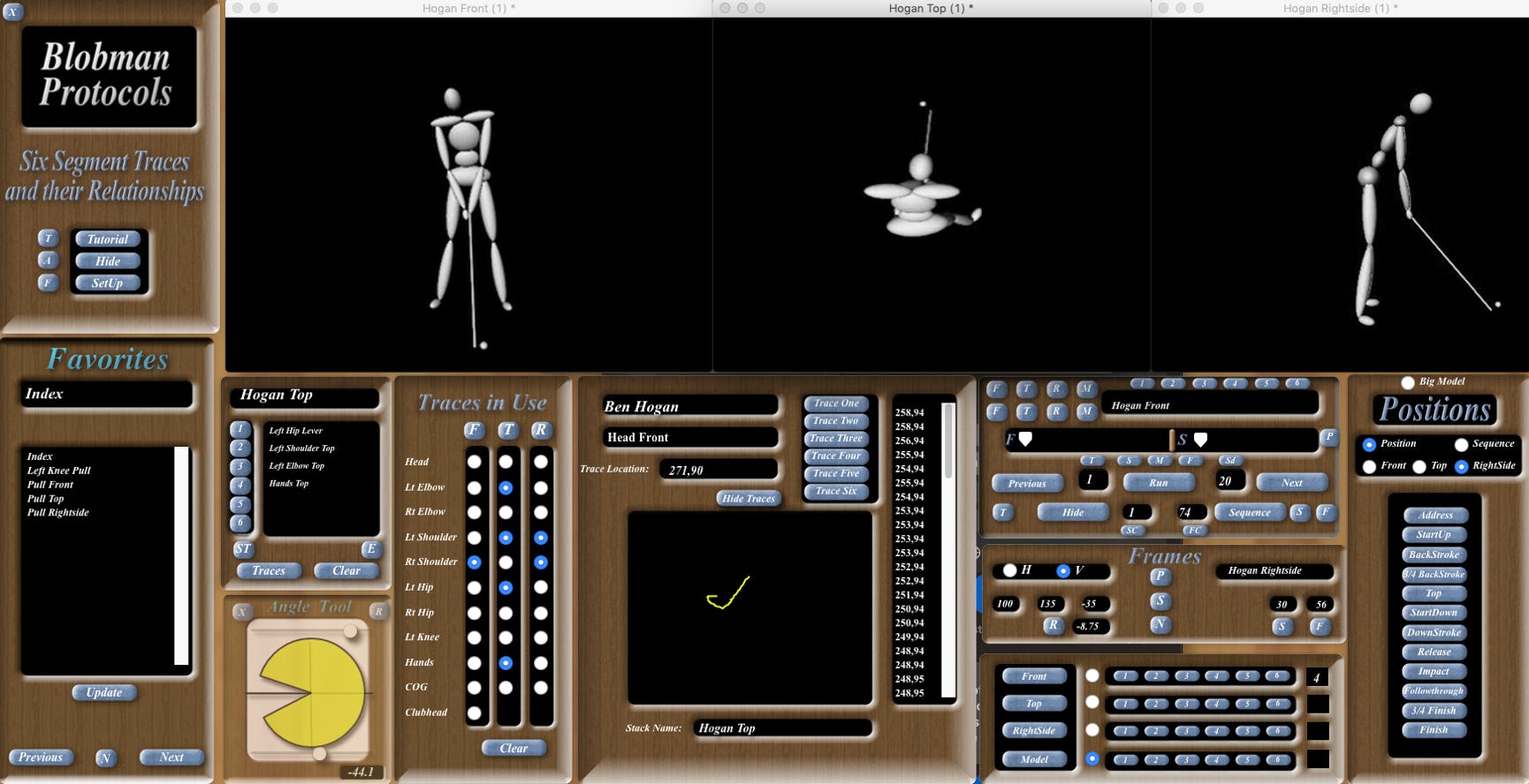 With the use of the APAS Software and Hardware along with the Specialized collaboration of Silicon Graphics, Inc., this group was able to generate a reasonably accurate 3D Model of the Golf Swing Ben Hogan made on Shell's Wonderful World of golf.